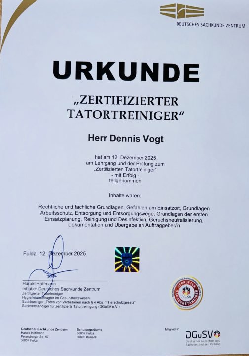 Was bedeutet „Zertifizierter Tatortreiniger“?